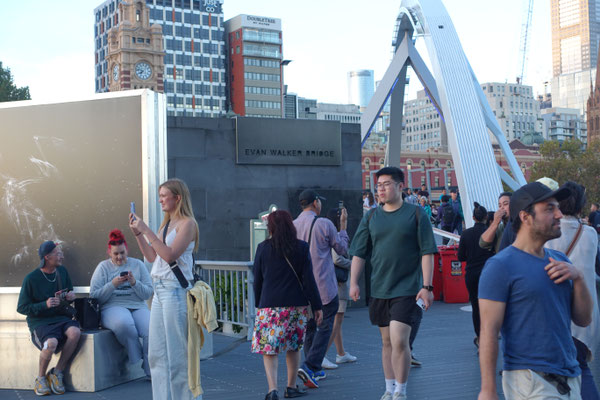 Uni von Melbourne, die wohl gerade Mittagspause hatte und somit hunderte Studenten auf die Strassen frei gab. Man kam sich auf einmal wie