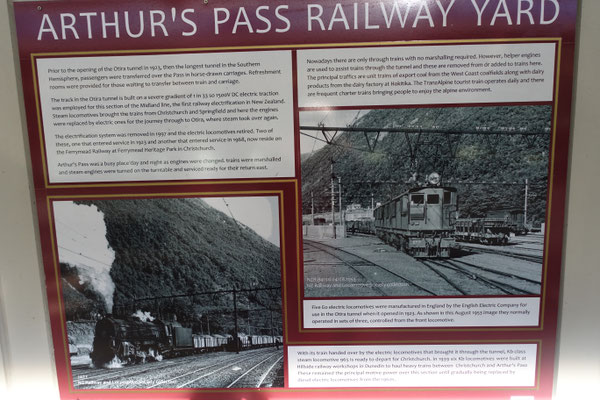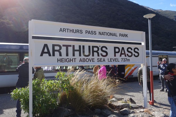 Danach geht es auf der Midland Line durch die Southern Alps. 1886 wurde hier, nachdem die Entscheidung über die Streckenführung gefallen war, mit dem Bau begonnen. 1895 wurde die Strecke von der Staatsbahn übernommen und fortgeführt. 1910 erreichte man der Ort Cass und 1914 den Arthur`s Pass. Hat man Cass erreicht, eröffnet sich der Blick auf den Mount Binder mit einer Höhe von 1.860 Metern. Anschließend kommt der Arthur`s Pass, der auf einer Höhe von 737 Metern der höchste Punkt der Bahnstrecke ist. Hier liegt auch die Wetterscheide zwischen der Ost- und Westküste. Nach dem mit 8,5 Kilometern längste Tunnel erreicht man die Westküstenregion. Die Vegetation ändert sich jetzt vom trockenen Buschland/Weideland zu einer grünen Landschaft mit Urwäldern und grünen Graslandschaften. Danach geht es sehr langsam
