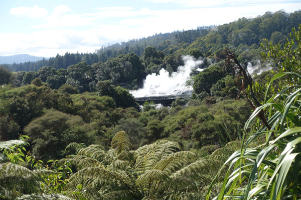 im Distrikt Rotorua Lakes und am Eingang zum Whakarewarewa Valley, umgeben von vielen Seen vulkanischem Ursprung und dem Park Te Puia. Wie die Namen schon erahnen lassen, sind wir auch in eine Maori Landschaft gefahren.