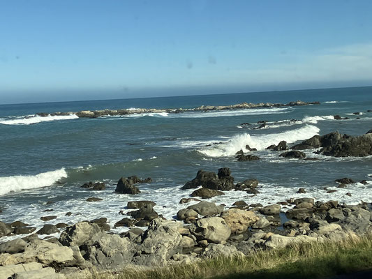 Danach kommt man nach Kaikoura mit seinen besonders schönen Stränden. Im Anschluß durchfährt man eine unendlich wirkende Farmlandschaft mit kleinen und großen Herden von Schafen und Rindern. Nach 5 Stunden angenehmer Zugfahrt erreicht man Wellington kurz vor es hier dunkel wird. Der Abschluss war dann die Fahrt in unser Hotel mit kleinem Abendessen.
