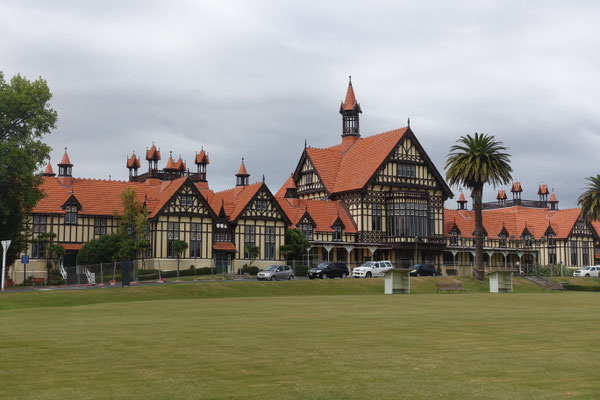 Rotorua ist direkt am Rotoura See gelegen und wurde von Maoris im 14. Jahrhundert gegründet. Heute ist es ein beliebter Kurort geworden, mit diversen heißen Thermen und vielen Sehenswürdigkeiten. Besondere Attraktionen sind die im viktorianischen Stil erbauten Gebäude, wie das Badehaus und das Crickethaus (siehe Bilder). Nach Rotorua sind wir zum Park Te Puia gefahren. Dieser Park umfasst unter anderem zwei nennenswerte Mud Pools (Schlammbecken), in denen kochend heißer Schlamm vermischt mit Gestein an die Erdoberfläche tritt. Ich denke die Bilder zeigen es gut.