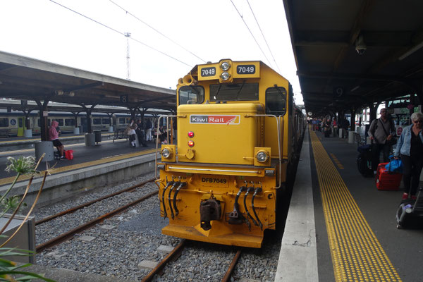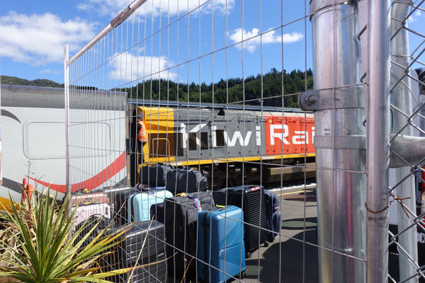Heute beginnt die erste unserer insgesamt 4 Zugfahrten in Neuseeland. Unsere Fahrt mit dem Northern Explorer Zug beginnt pünktlich um 10.15 Uhr am Bahnhof in Hamilton. Der Check In erfolgt im Stile der auch von den Fluglinien benutzen Version,