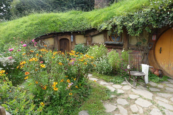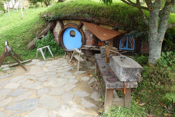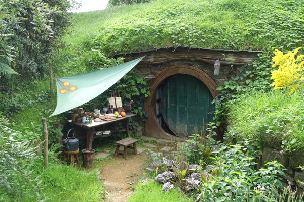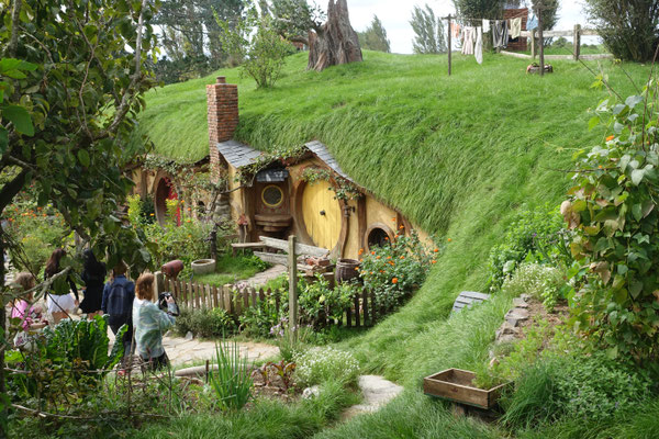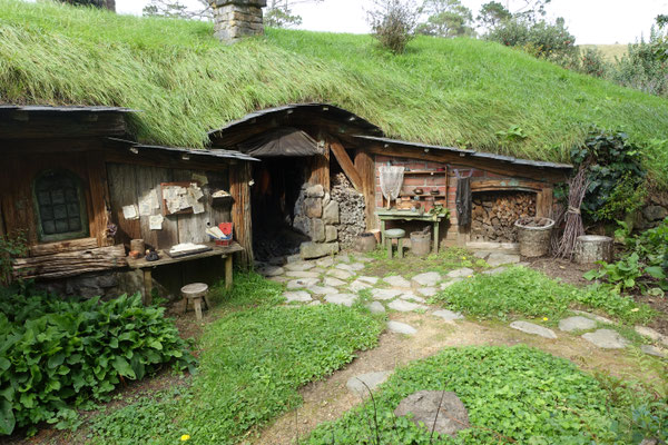 hergestellten Szenen. Hierzu suchte Jackson Landschaften, die er für seine oben genannte Filme verwenden konnte. 1998 fand er die Alexander Farm in der Nähe von Matamata. Diese hügelige und naturbelassene Landschaft entsprach seinen Vorstellungen für die genannten Filme. Im März 1999 begannen die Arbeiten zur Herstellung der Filmlandschaft. Insgesamt wurden 39 Hobbithöhlen (Häuser), eine Mühle am See, die berühmte Steinbrücke, viele Wege, Gärten und das Green Dragon Inn gebaut. Im Dezember 1999 begannen die 3-monatigen Dreharbeiten für den Film "Herr der Ringe". Im Oktober 2011 wurden dann hier die entsprechenden Szenen für die Hobbit Trilogie gedreht.