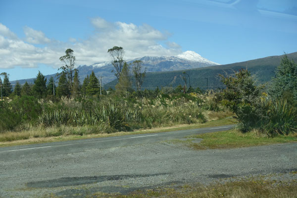 Oben angekommen sieht man die 3 Vulkane Mount Tongairo, Mount Ngauruhoe und den mit 2.797 mtr. höchsten und schneebedeckten Berg Mount Ngauruhoe. Im Winter ist das Skigebiet und im Sommer das Trekkinggebiet No. 1. Der Mount