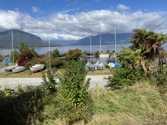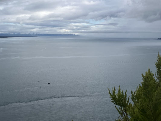 Unterwegs waren sogar einige Delphine zu sehen, die leider so schnell waren, dass sie nicht mit der Kamera zu erwischen waren. Gegen 16:30 Uhr waren wir pünktlich in Picton wo wir in einem Motel ein schönes Apartment mit Blick auf die Bucht von Picton und das Meer haben. Morgen werden wir eine kleine Bootstour in das Insellabyrinth, genannt Marlborough Sounds, machen. Sind gespannt auf die neuen Eindrücke dann.