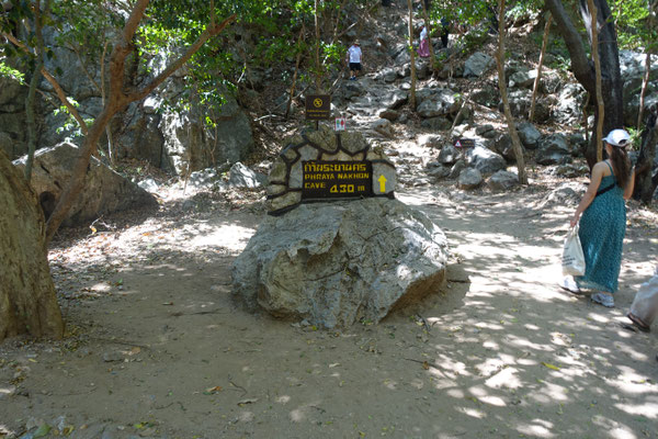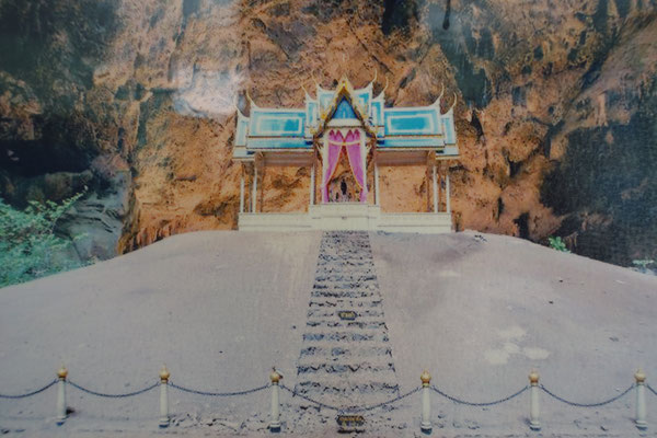 Tham Parka Nakorn Höhle über eine Naturseintreppe in 400 mtr. Höhe mit einem vom König Rama V 1890 errichteten Königstempel bzw. Gebetstempel zu besichtigen. Sehr schöne Stalagmiten sind dort zu sehen. Alles sehr schön anzusehen. Die 5 Liter Verlust an Körperflüssigkeit beim Auf- und Abstieg konnten wir dann in einem in der Bucht liegenden Restaurant mit Mittagessen wieder ausgleichen. Zurück ging es