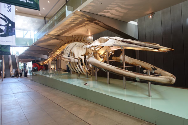 Unteranderem sind eine große Anzahl von Dinosaurierskeletten und ein Skelett eines Zwergblauwals, Sehr beeindruckend !! Im Anschluss befindet sich ein großer Bereich für Edelmetalle und Mineralien aus der ganzen Welt. Unglaubliche Farben begegnen einem dort. Denke die Bilder zeigen davon etwas. Darüberhinaus ist auch die Geschichte der Aborigines, der Entwicklung der Stadt Melbourne von der Gründung bis heute, ausgestellt. Im Innenbereich des Museum ist eine Freifläche mit einem Wald mit Bäumen bis zu 30 Meter Höhe und vielen Tierarten