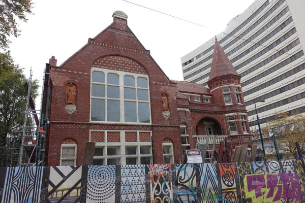 sich auf einer Hauswand um die Ecke von unserem Hotel in Hamilton.
