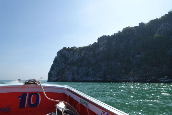 wieder mit Langtallbooten zum Eingang des Parks an dem unsere Kleinbusse für die Rückfahrt nach Hua Hin warteten.