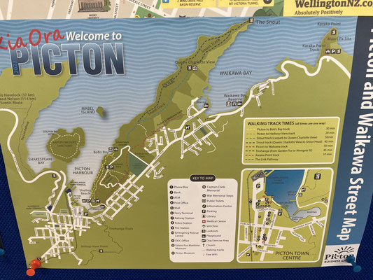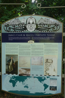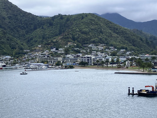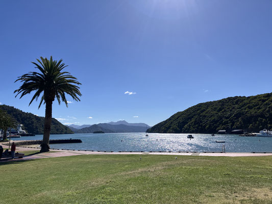 19.03.2024 - Picton Heute haben wir an einer Fahrt mit dem Boot in die Marlborough Sounds und den Queen Charlotte Sound unternommen. Der Namensgeber für das wunderschöne Wasserlabyrinth ist der Herzog von Marlborough, zur Belohnung seiner Erfolge im Beginn des 18. Jahrhundert im spanischen Erbfolgekrieg. In der Maori Tradition ist die Südinsel das Kanu von Aoraki, wobei der Queen Charlotte Sound den versunkenen Bug darstellt. Auf dem am Kamm der Berge in Höhen zwischen 415 und 500 Metern liegenden Queen Charlotte Track mit einer Länge von 70 km, kann man Mehrtagestouren von Anakiwa (gegenüber von Picton gelegen) bis zum Ship Cove zum Caption Cook Monument gehen. Unterwegs gibt es viele Lodges, die gemietet werden können. Für große Naturfreunde gibt es unterwegs diverse Campingplätze zum Übernachten. Am Ende der Tour erreicht man die Bucht, in der Caption Cook im Februar 1770 mit seinen Schiffen Endeavor und Resolution erstmals anlegte. Die Bucht gefiel ihm so sehr, dass er auf allen seinen drei Reisen hier ankerte, um Frischwasser, Obst und Fisch zu laden. Heute ist die Bucht Station für die Ausflugsboote, die auch die Mountainbiker und Wanderer ab- und aufnimmt.