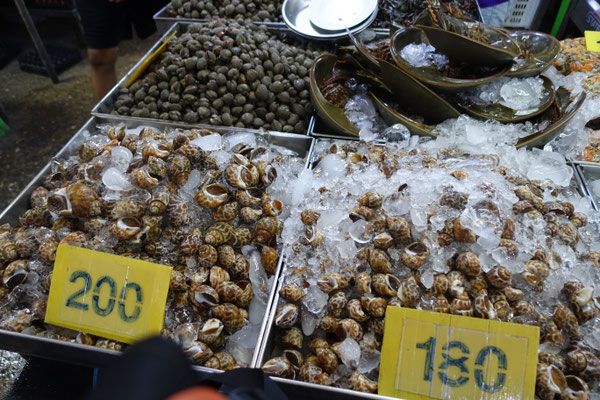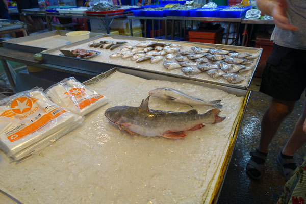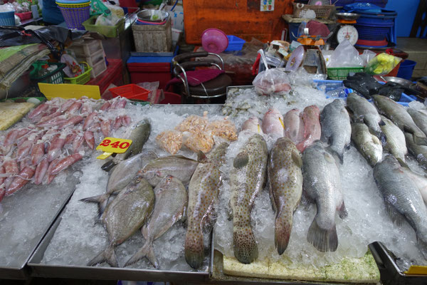 Danach haben wir den Tagesmarkt Chat Chai in Hua Hin besucht. Unglaublich welche Mengen an Fisch, Fleisch, Gemüse, Obst und Gewürze aller Art angeboten wird. Laut unserem Reiseführer sind die gezeigten Mengen (siehe FOTOS) innerhalb von 2 Tagen verkauft. Unglaublich .