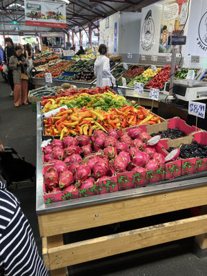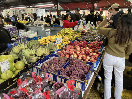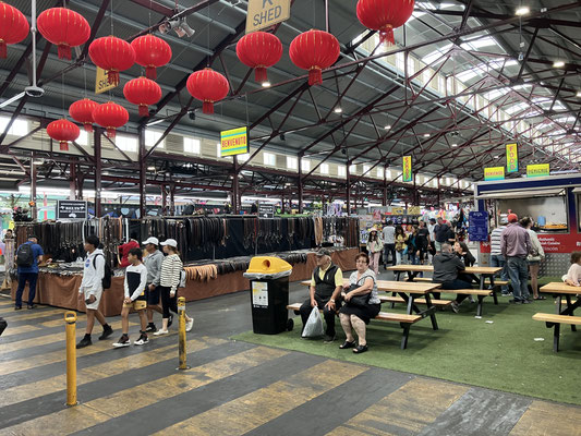 1. Trip ging wieder mit der Strassenbahn zum Queen Victoria Market. Der Name lässt es schon erahnen, es ist ein im Viktorianischen Stil im späten 19. Jahrhundert erbauter Markt. Was klein am 20. März 1878 anfing und ursprünglich nur für Großhändler zugänglich war, wurde im Laufe der Jahre zum Publikums Markt auf einer Fläche von jetzt 7 Hektar. 90 % der 600 Stände und Geschäfte sind überdacht und somit auch bei etwas schlechteren Wetter gut zu begehen. Der Markt teilt sich in Hallen für frische Meerestiere, Fleisch, Wurst, Käse und allen leckeren Beilagen, wie