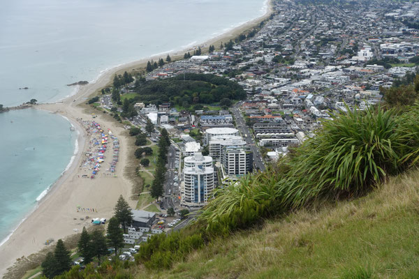 Wie schon in den ersten Tagen von hier berichtet, ist der Berg "Mount Maunganui" eine Sehenswürdigkeit, die man einmal besucht haben sollte. Der Mount ist vulkanischen Ursprungs und für die Maori ein heiliger Berg.Er hat eine Höhe von 232 Meter und ist in einem Weg von ca. 40 Minuten zu erklimmen. Von dort oben hat man einen sehr schönen Ausblick über das Meer, den Strand und Tauranga selbst. Ich denke, die Fotos geben einen Eindruck von umliegenden Landschaft wieder.