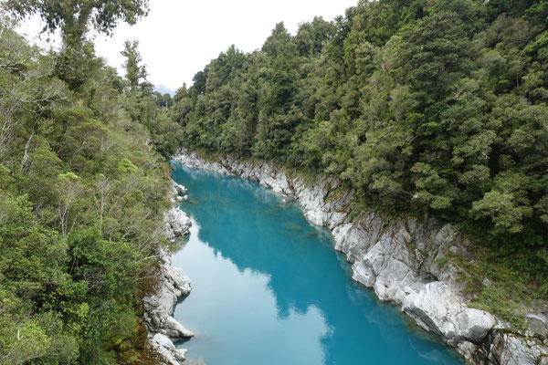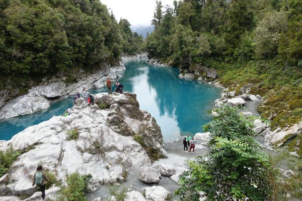 Danach ging es weiter zum Hokitika Gorge Track. Dies ist ein Platz, von dem man sagt: Manchmal sieht man ein Foto von einem Touristenort und denkt, so schön kann es im wirkliche Leben doch nicht aussehen.