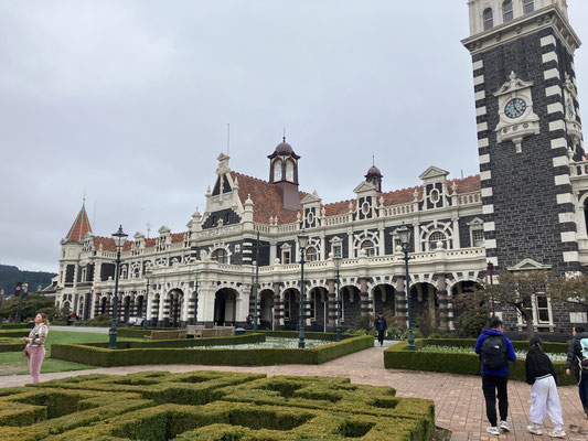 31.03.2024 - Ostern in Dunedin. Die letzte Station auf der Südinsel. Nach einer wieder von tollen Landschaften, kleine süße Städtchen und Farmen geprägte Busfahrt sind wir heute Mittag in Dunedin angekommen. Wegen ihren schottischen Gene wird die zweitgrößte Stadt der Südinsel gern mit Edinburgh verglichen. Dun Edin ist der alte Name von Edinburgh. Die Stadt wurde 1848 gegründet und erlebte mit dem Goldrausch 1861 ihren Boom zur Großstadt. Heute leben hier rund 120.000 Einwohner.