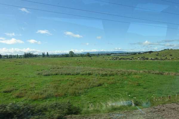 Hinter Christchurch durchfährt man die Canterbury Plains, eins der größten zusammenhängenden Farmflächen in Neuseeland.