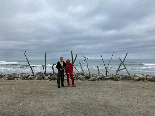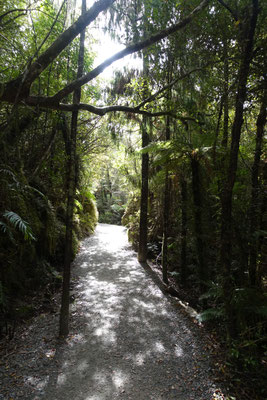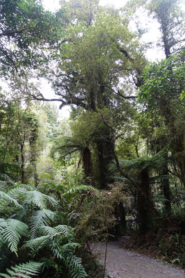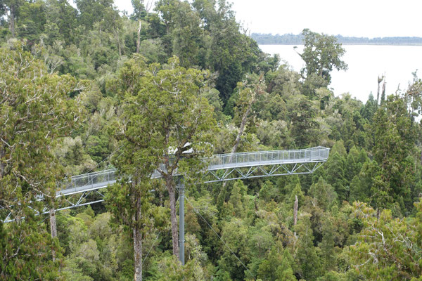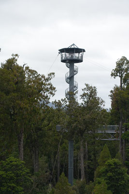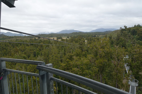 Heute haben wir einen Ausflug in einer kleinen Reisegruppe von 6 Leuten (3 aus Indien, eine aus Hawaii, eine aus Hamburg und wir Zwei) mit gleich 2 Highlights unternommen. Von Greymouth sind wir Richtung Süden nach Hokitika gefahren. Hokitika ist eine kleine Stadt mit viel Charme, viel Strand und vielen Kunsthandwerkern und ihren kleinen Geschäften.Dort haben wir am endlosen Strand einen kleinen Stopp gemacht, um einige Fotos zu machen. Nächste Station war der "Walk the Treetops" am See Mahinapua, Ein Baumwipfelpfad mit einer Gesamtlänge von 1,2 Kilometern, angelegt auf einer Höhe von 20 Meter und einem Aussichtsturm mit einer Höhe von 47 Metern. Nach 107 Stufen erreicht man eine Aussichtsplattform. Dort hat meinen einen tollen Blick über die Landschaft, den See und bis zum Meer. Einfach schön !!