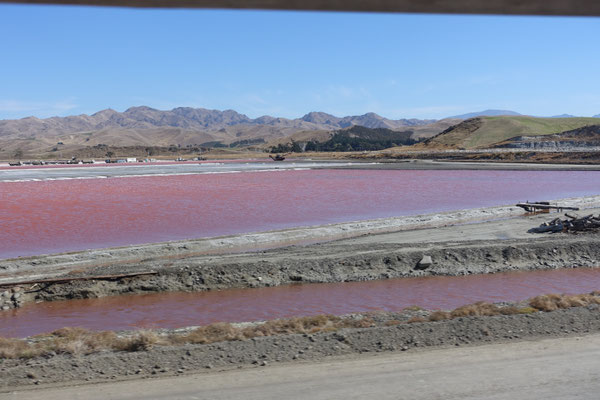 Heute haben wir die zweite große Reise mit der Bahn unternommen. Von Picton nach Christchurch in 5 Stunden und einer Länge von 348 Kilometer. Auf der Strecke konnten wir wieder die Vielfalt und Schönheit von Neuseeland bewundern. Der Anfang machte das Weinbaugebiet von Blenheim bis nach Seddon von dem ich ja bereits berichtet habe. Anschliessend kommt man zum Lake Grassmere und den dort befindlichen riesigen Salzsalinen. Hier werden 60 % des Salzes in Neuseeland hergestellt. Die unterschiedlichen Farben der Salinen sind beeindruckend und ich hoffe die Bilder geben davon etwas wieder. Bei Ward erreicht man die Pazifikküste. Unglaublich welche tollen Landschaften man dort zu sehen bekommt. Besonders ist der Augenblick wenn man auf der anderen Seite der Strecke den Tapuae-o -Uenuka aus der Kaikoura Range mit einer Höhe von 2.885 Metern, der höchste Berg auf dem Nordteile der Südinsel, sieht. Auch seine Gipfel sind Schneebedeckt. Traumhaft.