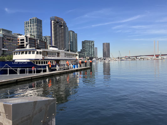 Unser erster Ausflug heute ging mit der Strassenbahn von der anderen Uferseite vom Zentralbahnhof Flinders St Station zu den Docklands und