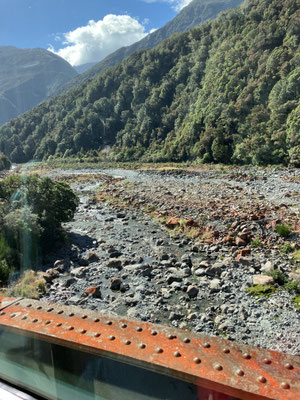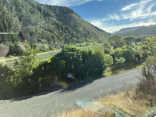 23.03.2024 Fahrt mit dem Trans Alpine, der Christchurch an der Ostküste mit Greymouth an der Westküste der Südinsel verbindet. Die Fahrt gilt als eine der schönsten Zugfahrten in der Welt. Die Strecke hat 223 Kilometer und dauert 5 Stunden.