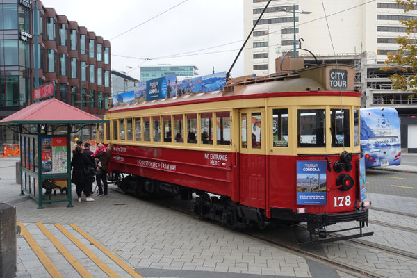 1850 gingen die ersten 4 Schiffe aus England in der natürlichen Hafenbucht vor Anker. Unter den 800 Menschen war John Robert Godley , der zum Gründer von Christchurch wurde. Bereits 1856 bekam Christchurch die Stadtrechte und ist dadurch die älteste bestehende Stadt in Neuseeland. Heute hat Christchurch ca.400.000 Einwohner und ist die größte Stadt auf der Südinsel. Wegen seiner neogotischen Architektur galt sie als englische Stadt Neuseelands. Leider hat das Erdbeben 2011 das Stadtbild total verändert. 1.500 Gebäude in der Innenstadt wurden beschädigt. Noch heute wird wieder aufgebaut, abgerissen oder notwendigerweise umgebaut. Einige Fotos zeigen es noch deutlich. Andererseits bestand dadurch die Möglichkeit, viele Bereiche der Innenstadt neu zu gestalten. Heute ist es eine sehr beliebte Innenstadt geworden. Ein besonderes Highlight ist die in der Innenstadt verkehrende historische Strassenbahn, die für 15 Dollar den ganzen Tag benutzt werden kann. Alle 10 Minuten ist eine Tram da und es macht richtig Spaß damit von A nach B zu fahren und die Füße etwas zu schonen. Natürlich auch zu dem Museum "Coca Canterbury " und der New Art Gallery, die wieder kostenlos besucht werden konnten.