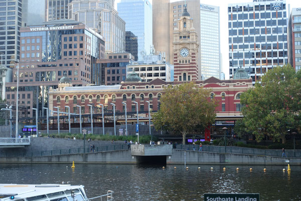 Einige große Boote auf dem Fluss liegend sind zu Restaurants umgebaut worden. Die Bilder geben die ersten Eindrücke dazu. Von der Southbank hat man einen schönen Blick auf einen historischen Altstadtteil mit der St. Pauls Cathedrale und dem Flinders Hauptbahnhof.
